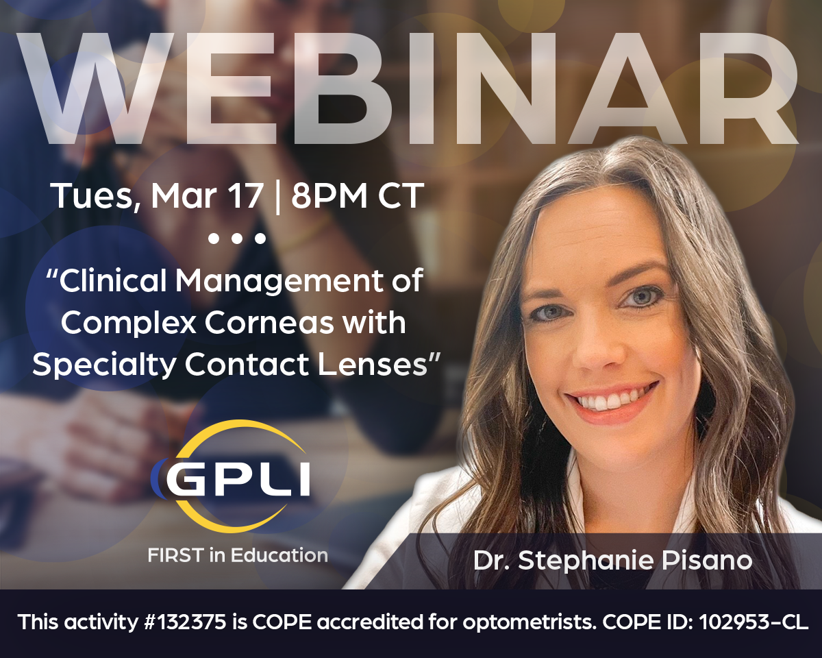 *Note: Highlighted webinars are undergoing COPE approval for optometrists. Cost for non-GPLI Members: $15. GPLI Members: FREE. Become a Member